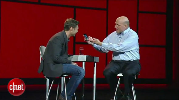 Silent of Er of Microsoft CEO Bao makes a speech free brooch pins in the theme on CES 2012Media origin: Sina science and technology